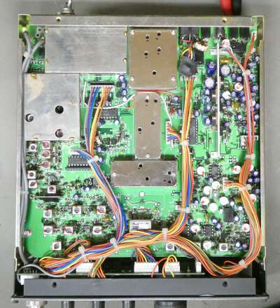 内部上面 上蓋を外した状態です 後ろ1/3は、送信ファイナルのヒートシンクです |