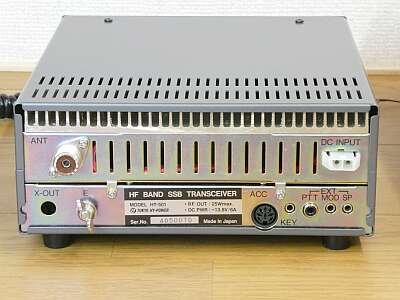 | 以下、マニュアルにある仕様です 受信範囲:500KHz − 30MHz 送信範囲:2.0MHz − 29.99MHz 7バンドに分割してカバー モード:AM、CW、USB,LSB メモリ:50CH 周波数制御:100Hz、または1KHzステップ 周波数安定度:±10PPM(−10〜+50℃) アンテナインピーダンス:50Ω オート・アンテナ・チューナー・オプション(AT−501) 電源:13.8VDC 消費電力:最大 送信6A 受信1.5A サイズ:212mm(W)x 88mm(H)x 234mm(D) 重量:4.5Kg 送信: RF出力電力:25W(0〜25W可変) スプリアス放射:−50db以下 キャリア抑制:−40db以下 不要なサイドバンド抑制:−50db以下 マイクロホン:600Ω 受信: 受信方式:ダブル・スーパーヘテロダイン方式 MixはDBMを採用 1stIF:45.0MHz 2ndIF:9.0MHz 感度:−6dbμ(12db SINAD) SSB/CW 選択性: SSB/CW:−6dbで、2.2KHz −60dbで、6.0KHz AM:−3dbで、20KHz −60dbで、100KHz AM/CWについて、フィルタ・オプションがあったようですが、本機は未搭載です オーディオ出力:2W以上(8Ω) |