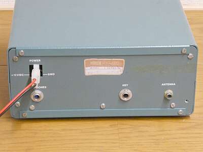 極めてシンプルなリアパネル 電源コネクタ 本来は6Pですが、手持ちの2Pに交換 下段のコネクタは、右から ・アンテナ接続用RCA ・電鍵(キー)接続用φ6 ・ヘッドホン接続用φ6 |