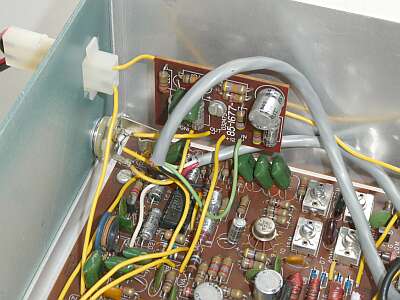 リアパネル側のアップ クリスタルは、バンド変換用 その右はOSCコイル 下の4つのコイルは、プリミックス出力同調 右端の小基板は、低周波AMP部 上に、元々取り付いていたPLが写っています |