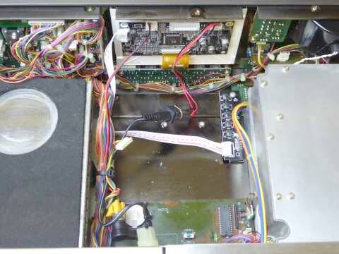 液晶パネルのフロント・パネルへの取付はOKとして、残りはCRTユニットの上に固定してあった基板と、新たに増えた液晶ディスプレイの設定(調整)ボタンが並んだ基板をどう固定するか・・・
