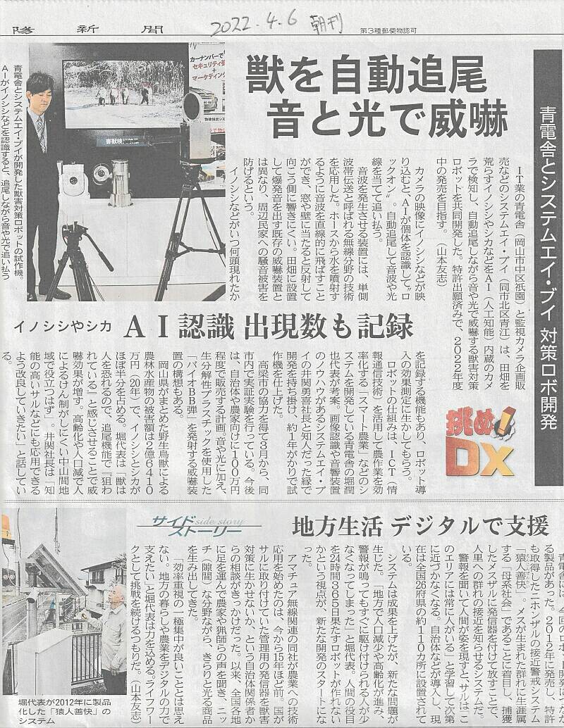 山陽新聞2022年4月6日 朝刊より |