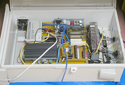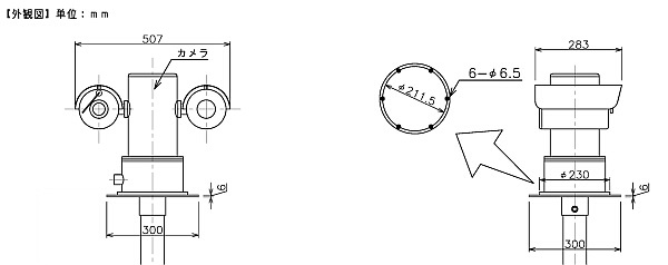 実証機では、このものにパラメトリック・スピーカー(放射器)と赤外線投光器、そしてLEDライトをセットしました |