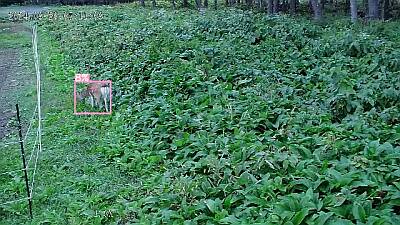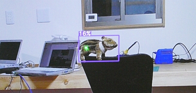ロボットから3m先に置いた全長25cmのウリ坊を、識別・威嚇をしている様子を、遠隔でモニタしている様子です