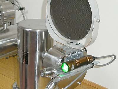 今回、忌避手段として採用したパラメトリック・スピーカーとLEDライト部のアップです