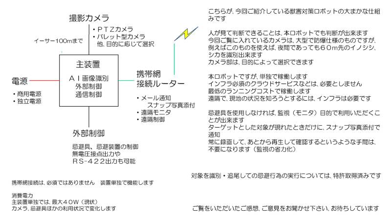 | センサとしてのカメラや、忌避手段の選択あるいは組み合わせなど、現地の経験に合わせた選択や利用が可能です |