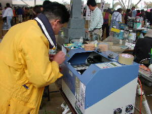 | 地元石材やさんの要請で、石材やさんのブースの一部に小型レーザー加工機を持ち込んで、コースターや、名刺入れ、ケータイ電池ケースなど小物にロゴや、写真などの刻印加工のデモンストレーションを行った 産業祭・・・我々のイメージとは少し違って、町をあげてのお祭り・・・のイメージ 朝市+演芸会と言った方が合っているかも・・・・ 祭日とはいえ、朝から冷たい雨・・・それでも、多くの方がお集まりになる 若い人は少なかったが、我々の持ち込んだレーザー加工に興味をもつ年輩の方は想像以上に多かった 当会場・・・ビッグハットと呼ばれる屋根付きのグラウンド 天候に左右されず、側に駐車ができ、使い勝手は良さそう 当市(当社の近く)にもこのような全天候型のグラウンドが間もなくオープンする |
