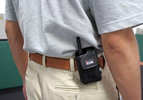 | 緊急発生時は、ボタンの長押しだけで職員室に事態の発生を通報できます このときには、自動的に校内放送設備に接続されますので、その場から校内放送にアナウンスができます このアナウンスは、同僚の職員全員の持つ無線機からも出力されます また、アナウンスの有無に関係なく、緊急ボタンが押されたことで、全ての無線機でアラーム音が鳴り、発信者を特定するコードが表示されます |