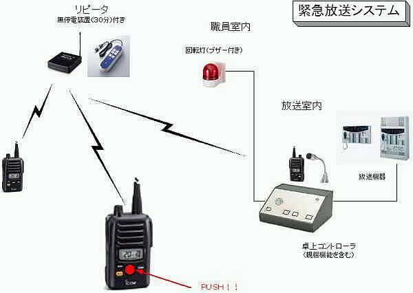 | ●緊急避難場所としての備品として 災害時の緊急避難場所として、地域の学校が指定されています いざというときに独自の通信システムを持っていると言うことは、その場にとってとても貴重なことです 災害のたびに、日頃便利に使われているケータイ電話が実用にならないことが報じられています 無線機による独自のインフラ確保・・・情報の共有化、伝達に威力を発揮します 災害に備えて、学校に通信手段を備蓄・・・・食料や毛布などと同様に考えていただくことが望ましいと考えます 本システムは、子どもたちを守るだけでなく、災害時には地域を守ることにも活躍します |