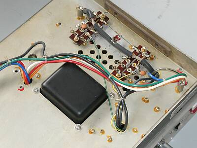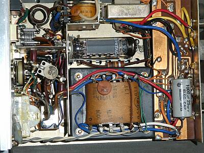 背の高いトランスは、このようにシャーシ下に沈めることで上面の高さを抑え、表に見えるサイズを本体に合わせられるよう設計してあります