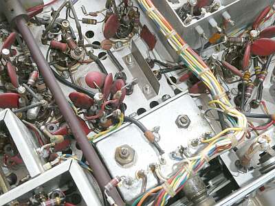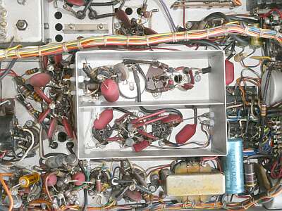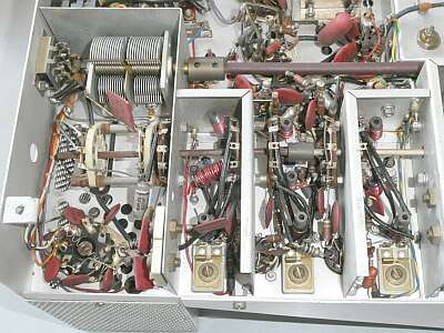段間は、きっちりシールドされ、シャフト類は、ベークライト製で、高周波的に絶縁してあります |