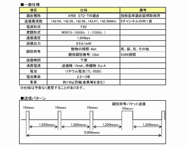農水省助成金対象 適法テレメトリ発信器(アニマル・マーカー)