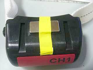 マグネットだけで定位置にきちんと収まりますが、もし長期間電源をOFFすることがあるケースには、マグネットをテープ止めしていただくことをお奨めします(マグネットが外れて電源が入り、電池が無駄に消耗することを確実に防ぐためです) |