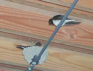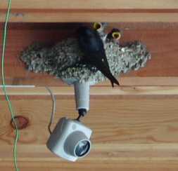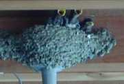 | ▼今年2組目のツバメ一家の様子(2004/07:車中からの撮影で解像度が今イチなのはご勘弁を) | |||||||||||||||||||||||||