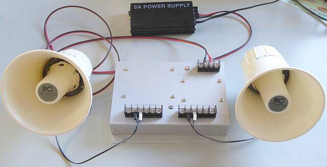 小型のトランペット・スピーカーで十分な使い方、それ以上の範囲をと言うために、外付けのアンプ・スピーカー(10W)を用意しました