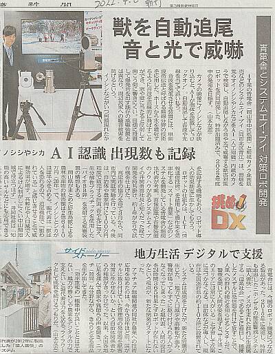 | ▼獣害対策ロボットや地方応援の取り組みが地元新聞で紹介されました (2022.4) | |||||||||||||||||||||||||