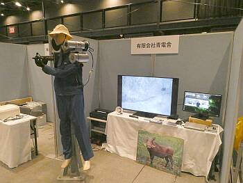 | 11月9日−10日 サッポロファクトリーで開催された「スマート農業を目指す先端技術フェア」に、獣害対策ロボットを出展しました 獣害対策としては長野の協和テクノさんが出展なさっていましたが、IoTセンサ・制御技術(いわば手足の部分)&インフラ、ドローンの活用という農水省の進める指針(絵)に沿った出展が多かったフェアです(タイトルのとおりです!) 総勢約50社の出展でした |