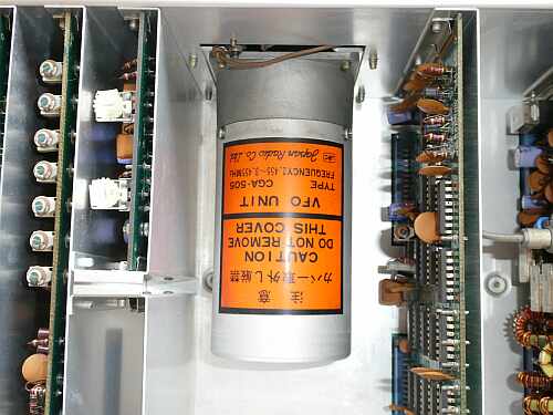 | 1978年の発売 ¥395,000 だったと思います アナログ設計最後の無線機(送信機)と言って良いと思います すでにトランシーバーが主体となったマーケットに残った、貴重なセパレート機(送信機)です BCLファン、あるいはセミ・プロニーズで、人気もあり市場に出回る数もそれなりにあったNRD-505という受信機と組み合わせる形での登場で、オール・ソリッド・ステートの走りでもあったのですが、如何せんこの価格ではそうそう売れるものではありません(実際、販売台数は少なったと思われます、情報がありません!) 当時のことですから、まだWARC対応はありません 340w x 140h x 300d 重量約9.5Kg(アルミシャーシ・ケースの採用で軽量!) 電源は内蔵せず、13.6V20Aの電源供給が必要で、純正の電源オプションとしては、NBD-505という外付けの装置がありました 受信機との共通は、VFO周波数だけですから、バンド切替ごとにトランシーブのゼロインが必要です(その昔の、八重洲 FLdx400/FRdx400の、コンビネーションみたい) 決して使い勝手は良くありません(鳴き合わせに、慣れても数秒必要でしょう) VOXに関係したツマミすべてがフロントパネルに用意があるのも珍しい? ALC表示メータの用意はなく、代わりに「OVER MOD」のLED表示の用意があります(尖頭値表示を意識?) この後、NSD-515というVFOをディジタル化した送信機が発売され、そのものがHF送信機として最後の製品になったように思います(トランシーバが主役の時代になった!) |