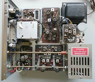 その下に見えているクリスタルは、USB,CW用の3396.5KHzのもので、LSB用の3393.5KHzはオプションのようです(HC-6/Uソケットが見えます) |