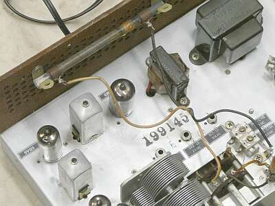 AFトランスとIFTの間に見える真空管が、3極5極複合管の6CM8です