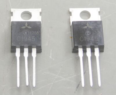 見るからに怪しい中華製の2SC1945 三菱のマークが菱でなくプロペラ状です オリジナルは、センターがエミッタで放熱フィンもエミッタのはずが、このものはコレクタです 左から、B−C−Eです 2つオーダーしたところ、なぜか3つ届きました ダメもとで使ってみることにしました |