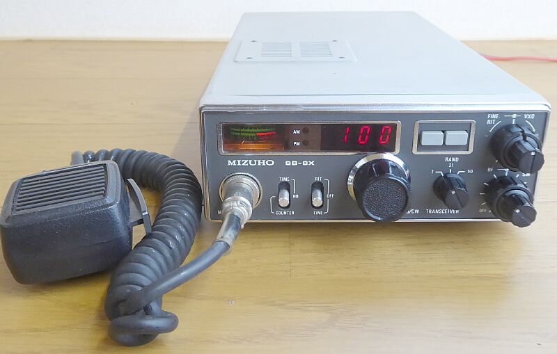 | 本体(マイクロホン、DCコード)以外、資料も何もありません(web上にも、ほとんど資料が見当たりません) SB-8Xは、1981年に発売されたMIZUHO最後のSBシリーズ製品です 10W出力の7,21,50MHzのSSB / CWトランシーバーです おそらくデジタルディスプレイを備えた唯一のMIZUHOトランシーバです デジタル表示はデジタル時計を兼ねることができ、スリープタイマーと目覚まし時計機能の両方を備えています 前面にある2つの大きなボタンは、時計を設定するためのものです デジタル表示はともかく、本機はアナログ設計によるMIZUHO特有のVXOを採用したトランシーバです メインチューニングノブは、1クリックは20KHzで、その間はVXOコントロールにより対応する仕組みです メインチューニングとは別にRIT機能と、ノイズブランカーを内蔵しています 9MHz台のクリスタルフィルタ(帯域幅2.4KHz)を採用、CW用のフィルタなど狭帯域化の対応はありません 最大800KHzをカバーします 送信出力は公称10Wです 以下、USのサイトにあった仕様を引用します 7.00-7.30MHz、21.00-21.45MHz、50.00-50.80MHz モード:A3J(SSB)、A1 周波数制御:VXO 周波数安定性:23°Cで電源をオンにしてから60分後から30分あたり±100Hz。最初の60分間で±500Hz 電力要件:13.8VDC 消費電力:最大 送信2.5A、受信340mA サイズ:165mm(W)x 62mm(H)x 312mm(D) 重量:3.4kg(結構重たい!) 送信機: RF出力電力:10W(PEP) スプリアス放射:7 / 21MHz:-40dB未満、50MHz:-60dB未満 キャリア抑制:40dB以上 不要なサイドバンド抑制:40dB以上 受信機: 受信方式:シングルコンバージョン方式 中間周波数:9.055MHz 感度:15dB S / Nで0.5μV未満 選択性:-6dBで2.4kHz、-60dBで4.8kHz マイクのインピーダンス:600オーム オーディオ出力:8オームで1W |