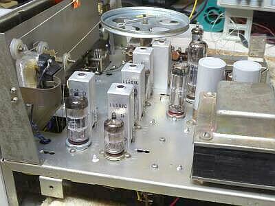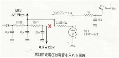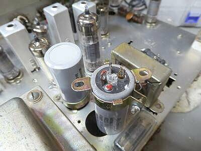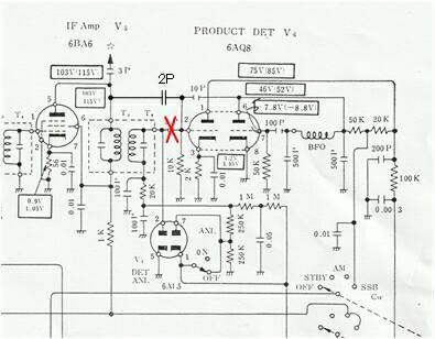 回路図を見ると、6BM8 三極部のGが直接VRのスライダーに接続されていましたので、0.1μのコンデンサを直列に入れ直流分をカットしました