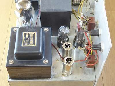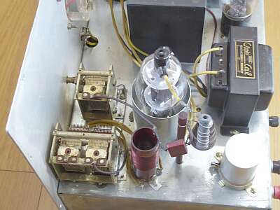 奥左端のコイルは出力同調用で、リンクコイルにより取り出されています