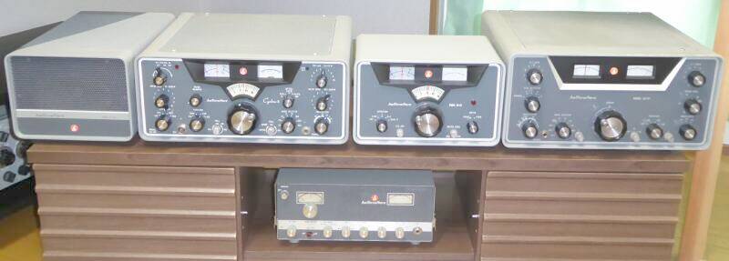 | 本機の構成 RF1段、IF2段のトリプルコンバージョンタイプの受信機です 1stIFは、6.5−6.0MHz 2ndIFは、1650KHz 3rdIFは、50.75KHz VFOは、4.85MHz−4.35MHzを発振 ヘテロダイン用クリスタルを用意することで、3−30MHzの受信に対応 アマチュアバンド(WWV)以外に、4つのクリスタルを内蔵、切替が出来るようになっています また、ヘテロダイン用クリスタルと合わせ、HA-10というLF/MFバンドチューナーをセットすれば、85KHzから3MHzまでの受信ができるようになる設定です(LF入力端子がリアパネルにあります) LSB/USBのモード変更は、2ndIFから3rdIFに変換するクリスタルを切り替えることによって行われています この処理で、BFOの周波数は一発でOK・・すなわち、ダイヤルカーソルは1本でOKということになります 選択度を稼ぐためのフィルタですが、メカニカルフィルタなどは高価だったため採用が見送られ、IFを50KHzまで落とし、そこにLCフィルタを用意して、という構造で CW:0.5KHz SSB:2.5KHz AM:5.0KHz という選択度を得ています またノッチフィルタですが、IF帯域幅の中で50db以上の低減ができます IFが、1650KHzというのは、ハリクラフターズ社の十八番 例えば、1961年発売の SX-140 こちらの受信機でも採用されています その昔、HF、あるいはVHFをBC帯に変換して受信するコンバータが流行った時期もありましたが、その名残りかも?です 送信機とトランシーブするためのクリスタルOSCと、VFO出力がリアパネルに用意があります 日本では、スター(STAR:後に八重洲無線に合併された)SR-700が、本機を真似た回路構成で作られました(1965年発売) |