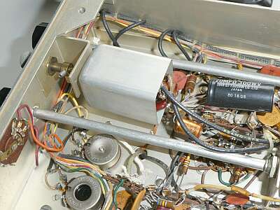 丸いシールドに収まっているのは 50KHzノッチフィルタ「L」部 ダストコアをツマミで直接回す構造です |