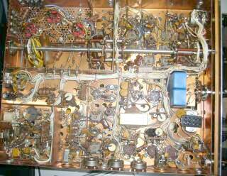 上蓋(上カバー)を取り外した状態です TR-4とほとんど変わりありません シャーシが銅メッキではなくなっていますが・・・ US品とは思えないくらい、コンパクトな作りです |