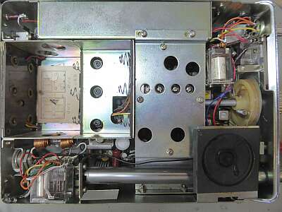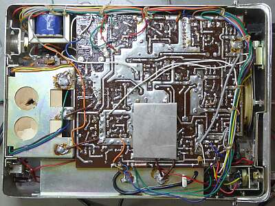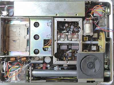 受信信号は、左から右へ、そしてスピーカー下の1st-IF(7〜11MHz)から上に、ここで455KHzの2nd-IFに変換、ここから下にIFアンプ部が続き、最後に検波となります