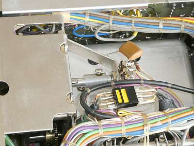シャーシ上面 全てユニット方式で、調整先が分かるように記したカバーがかかっています このカバーですが、金属製です |