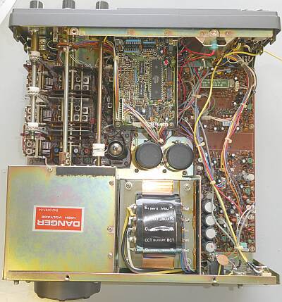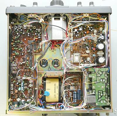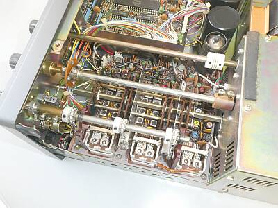 上蓋を外した様子 上が、フロントパネル側 ファイナル部シールドを取り外して写しています |