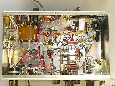 VC200PF+必要な容量をSWで切り替えて追加というスタイルを430PF2連VCに置き換え、ツマミをひとつ省略、空いたスペースにメーターを取り付けたという形です |