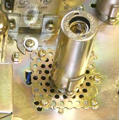 元々200PFの固定コンデンサを切替るロータリーSWの位置なのですが、430PF2連のVCを取り付けて使用することで、このローターリーSWを省略してあります