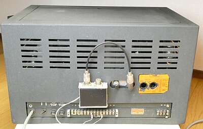リアの様子 前オーナーの手で、ANT切替リレーが取付けられています この時代は、送信機にアンテナ切替リレーの内臓が無いのは一般的・・・外付けアンプに持たせることも意識されていたと思われます |