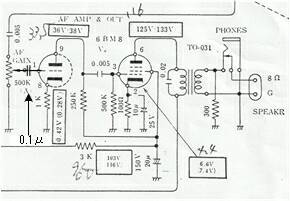 回路図を見ると、6BM8 三極部のGが直接VRのスライダーに接続されていましたので、0.1μのコンデンサを直列に入れ直流分をカットしました