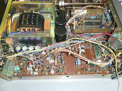上蓋を外した様子 上が、フロントパネル側 ファイナル部シールドを取り外して写しています |